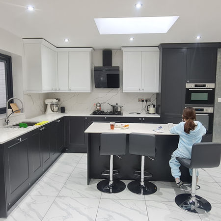Full kitchen installation with tiling and cabinetry